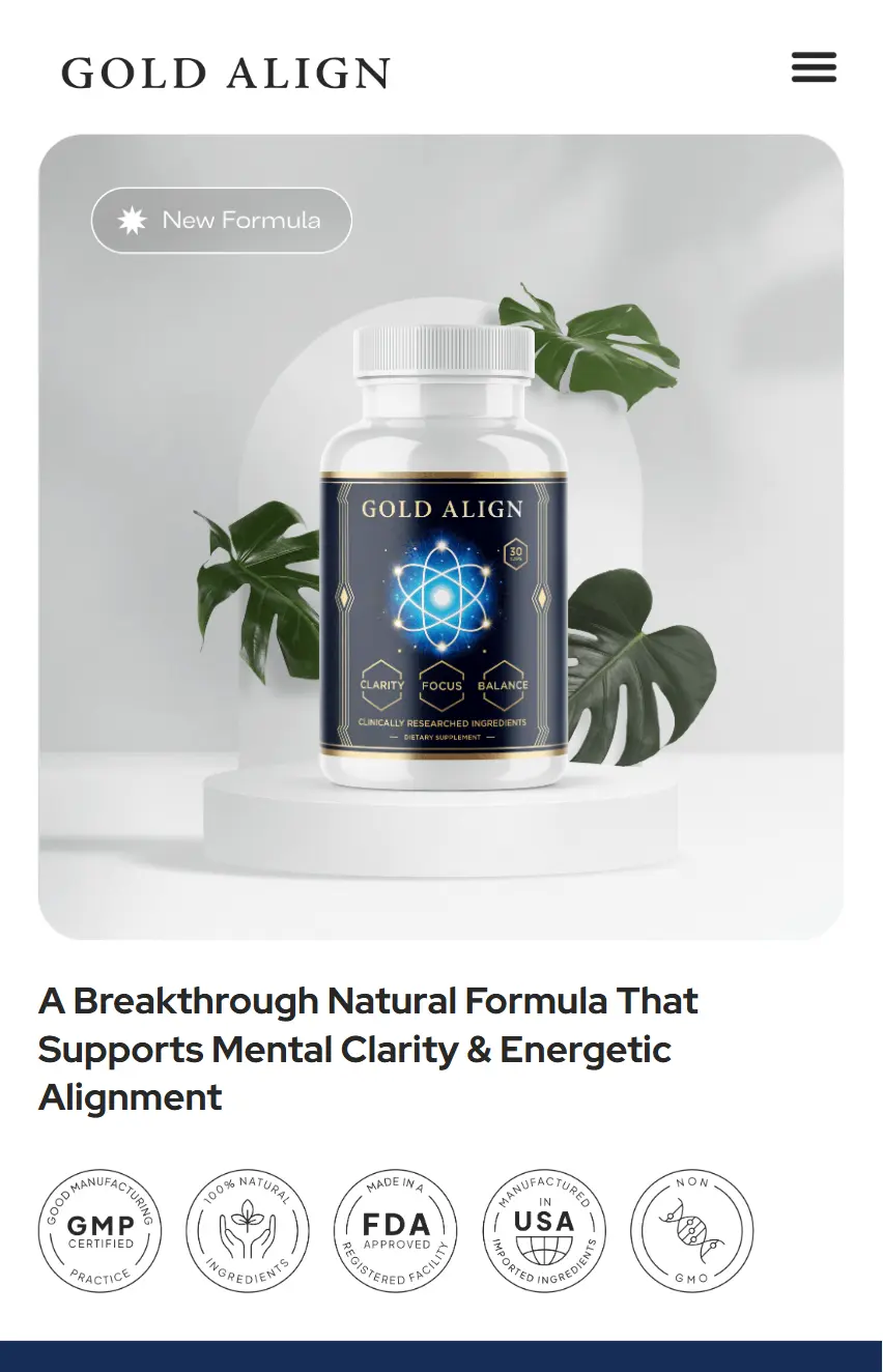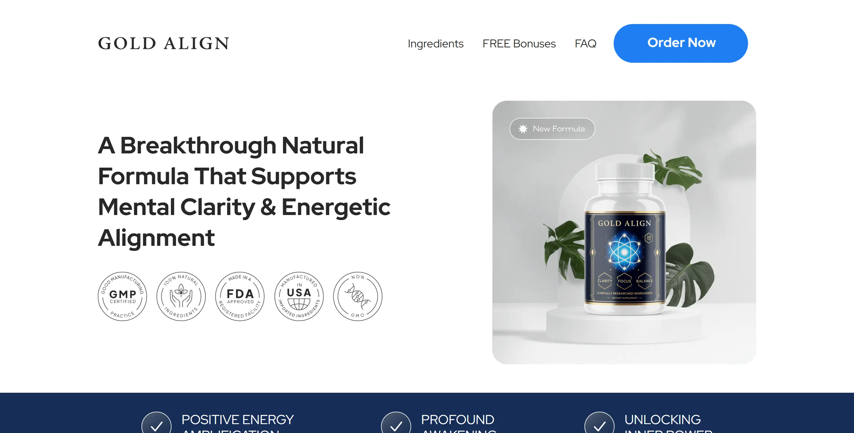 GoldAlign is marketed as a capsule formula for people seeking a more centered, clear-headed daily routine. The official materials describe a blend featuring Monoatomic Gold Ormus, Holy Basil, Sage, Myrrh, and other traditional ingredients. Check the official site for full formula details, current bundles, shipping terms, and bonus availability.